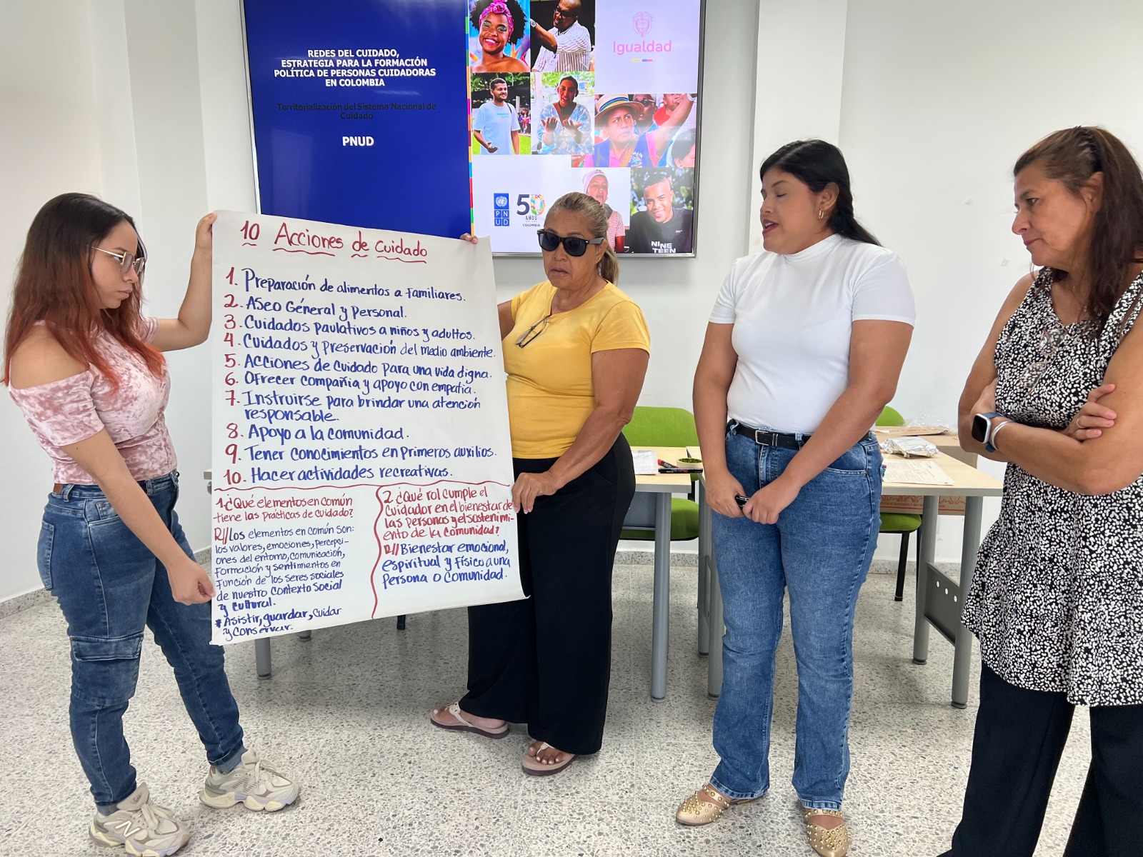 Desde la Oficina de la Mujer, en articulación con MinIgualdad y el PNUD, el Distrito ha puesto en marcha la estrategia Redes del Cuidado, una iniciativa que busca fortalecer las capacidades de las personas cuidadoras para que participen activamente en la construcción y seguimiento de políticas públicas que reconozcan y valoren su labor.