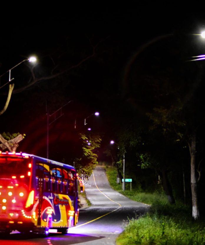 Cuando el sol cae, el viaje por carretera entre Baranoa y Usiacurí es más iluminado y seguro gracias a que la Gobernación del Atlántico avanza en la ejecución del proyecto de energización de vías de acceso rurales mediante fuentes de energía renovables no convencionales