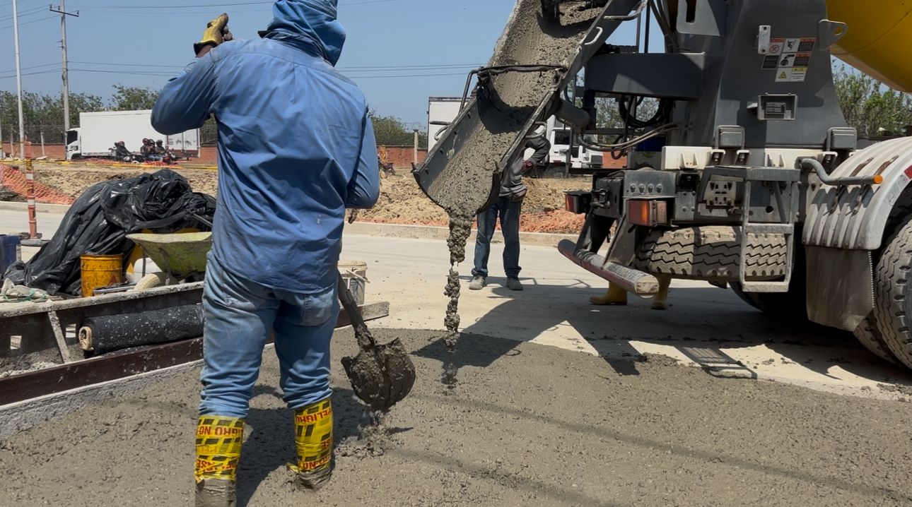 En la calzada norte ya iniciaron las fundidas de las losas del pavimento, construidas en concreto rígido con un espesor de 32 centímetros, diseñado para garantizar una vida útil superior a los 30 años.